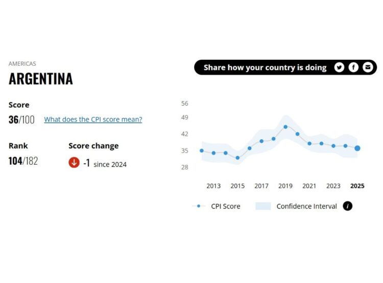 Argentina en descenso: retrocede en el Índice de Percepción de la Corrupción 2025
