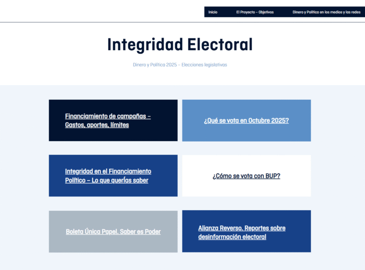 Por eso, estas para estas elecciones legislativas 2025, lanzamos «Integridad Electoral», un sitio interactivo con toda la información que necesitás para entender un poco más qué va a pasar este 26 de octubre en todo el país. Con datos concretos y análisis rigurosos sobre un tema que impacta directamente la calidad de nuestra democracia.