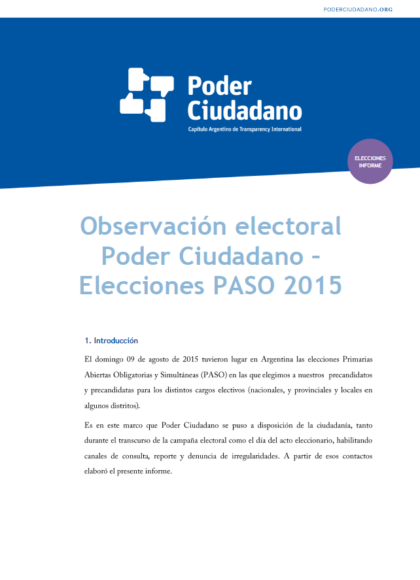 Observación electoral Poder Ciudadano: Elecciones PASO 2015 Autores Añoagosto de 2015 TemaBiblioteca Descargar